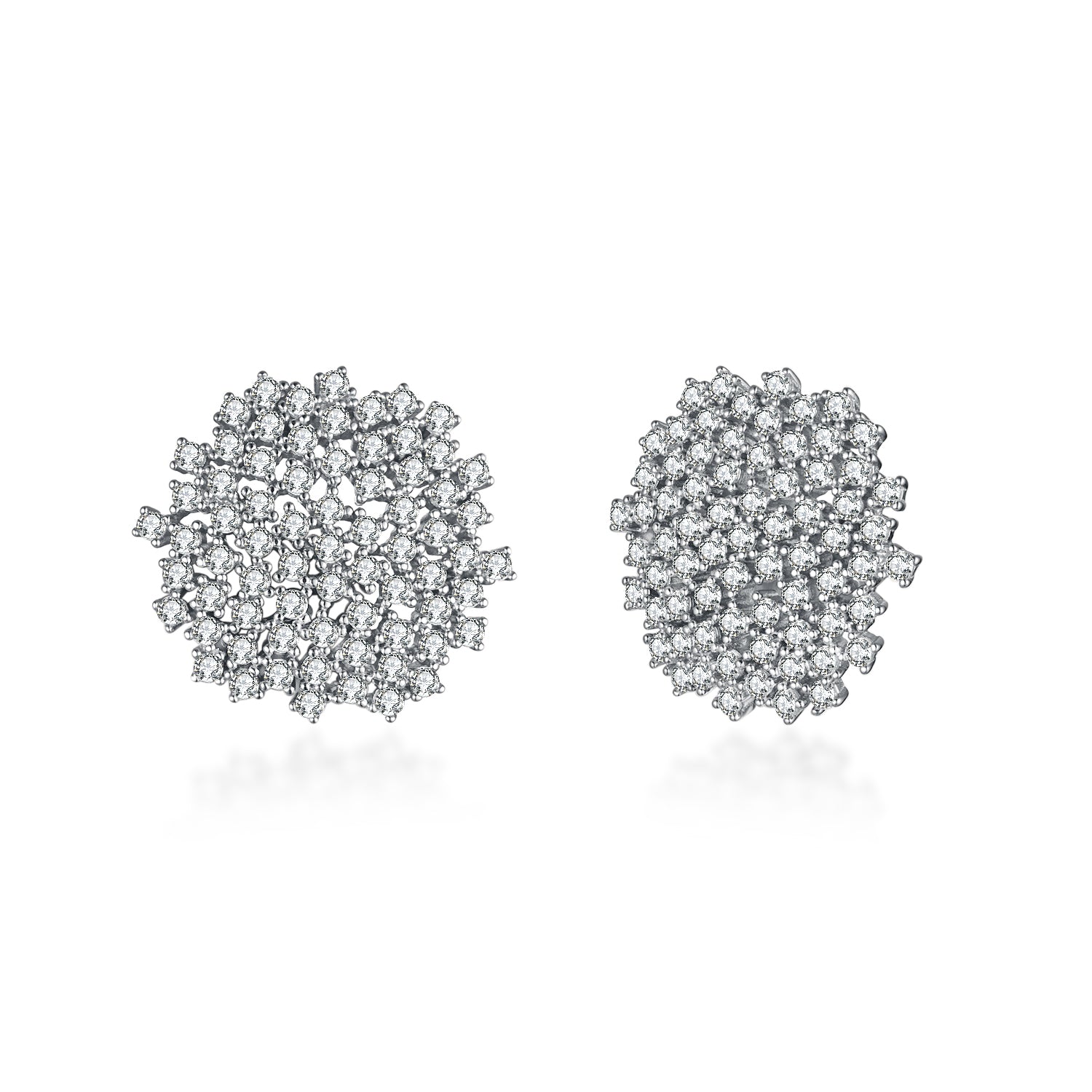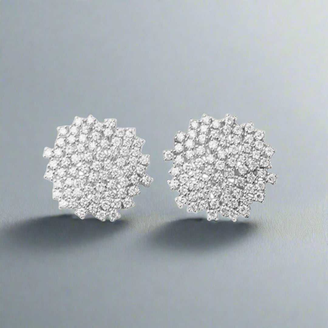 Unleash your inner sparkle with these stunning Rhodium Plated Sterling Silver Sprinkled CZ Stud Earrings. These earrings are designed with a striking shape that adds a touch of sophistication to any outfit. The earrings are plated in rhodium, which gives them a glossy shine that is sure to catch the eye.