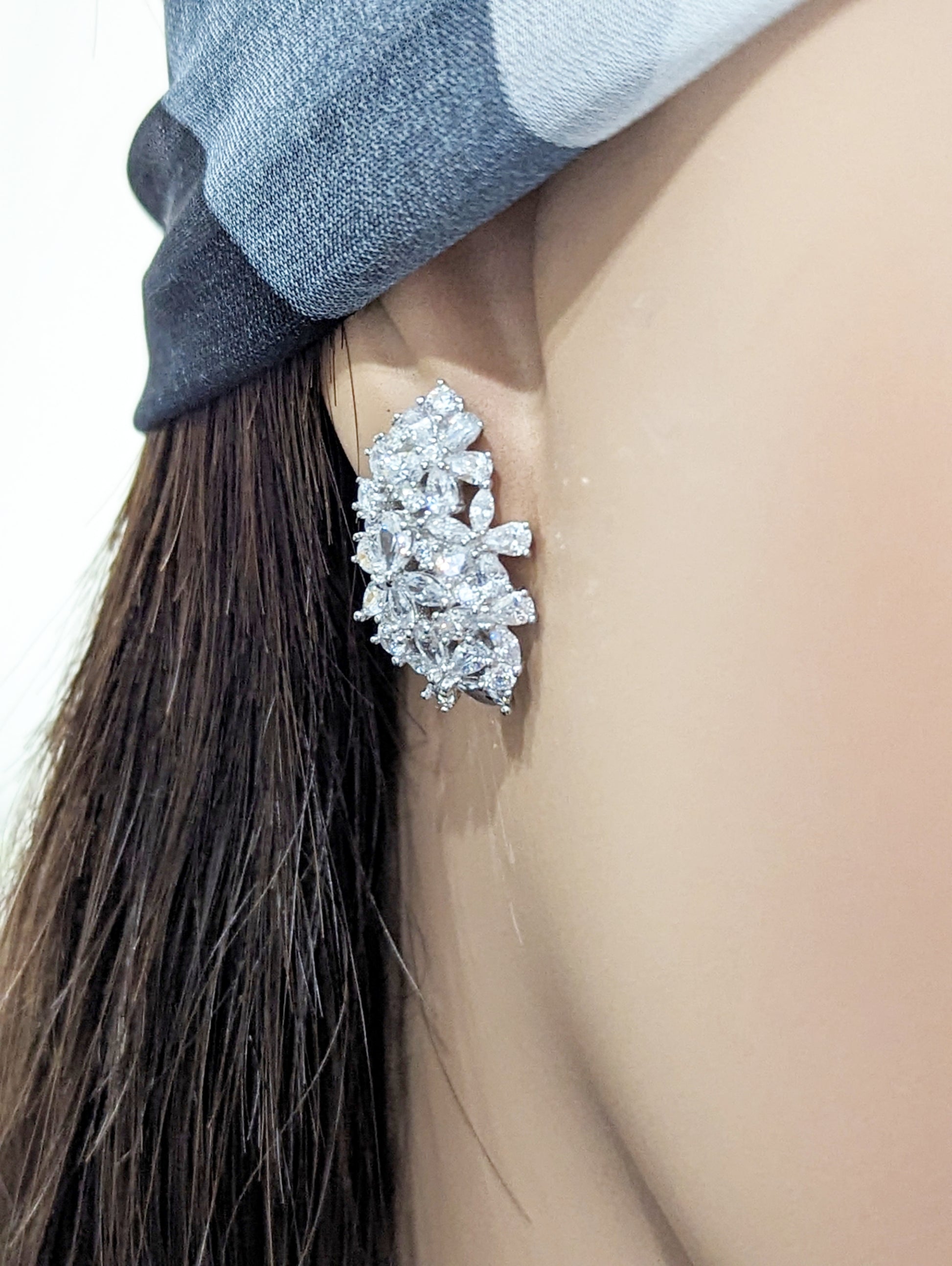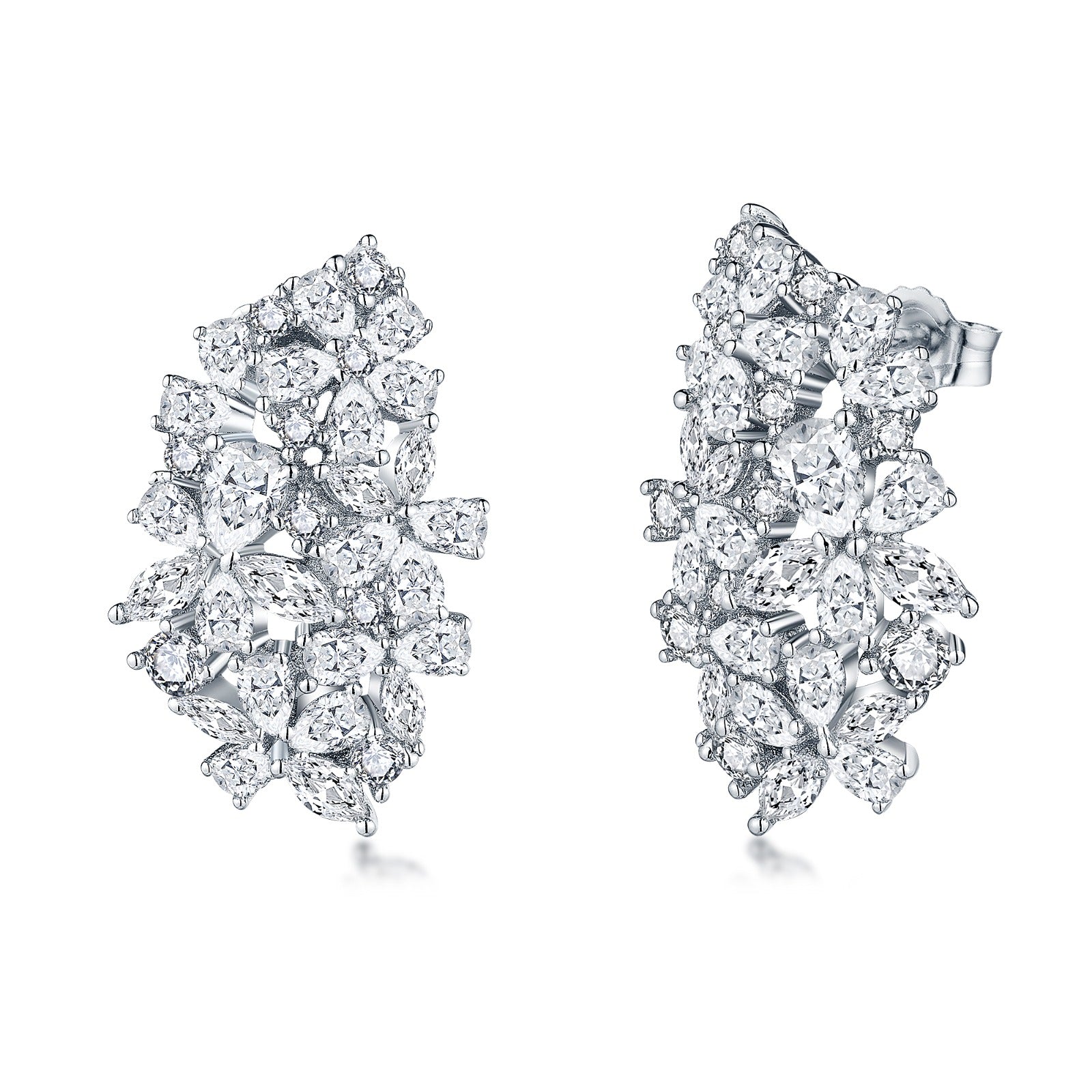 Sterling Silver Teardrop Cluster CZ Stud Earring