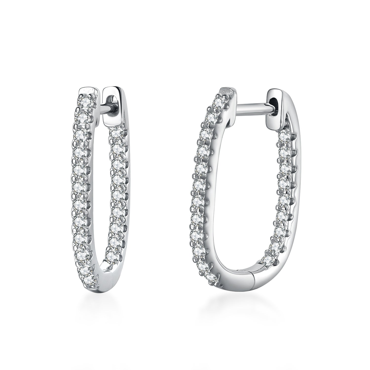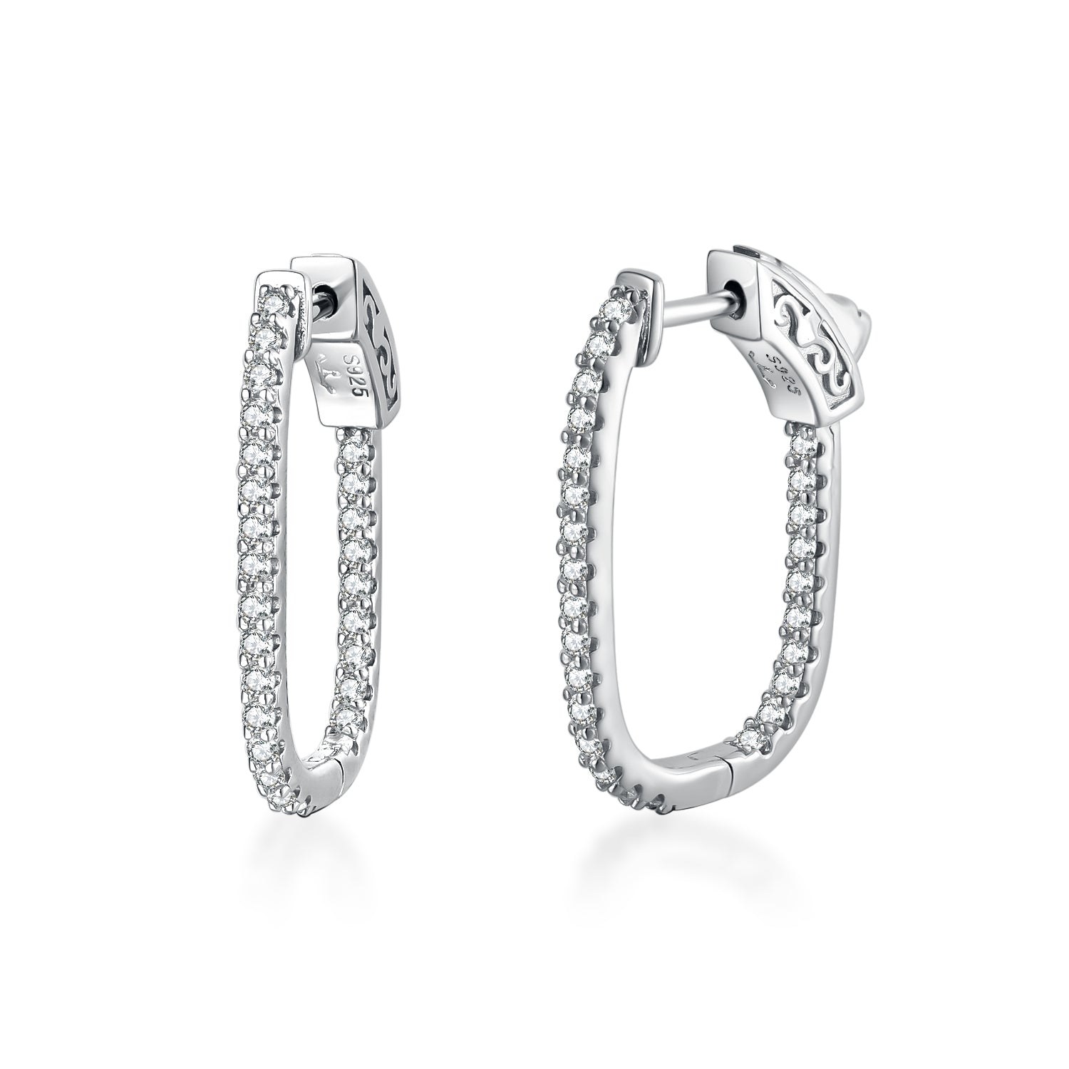 Sterling Silver Thin CZ Rectangular Hoop Earrings