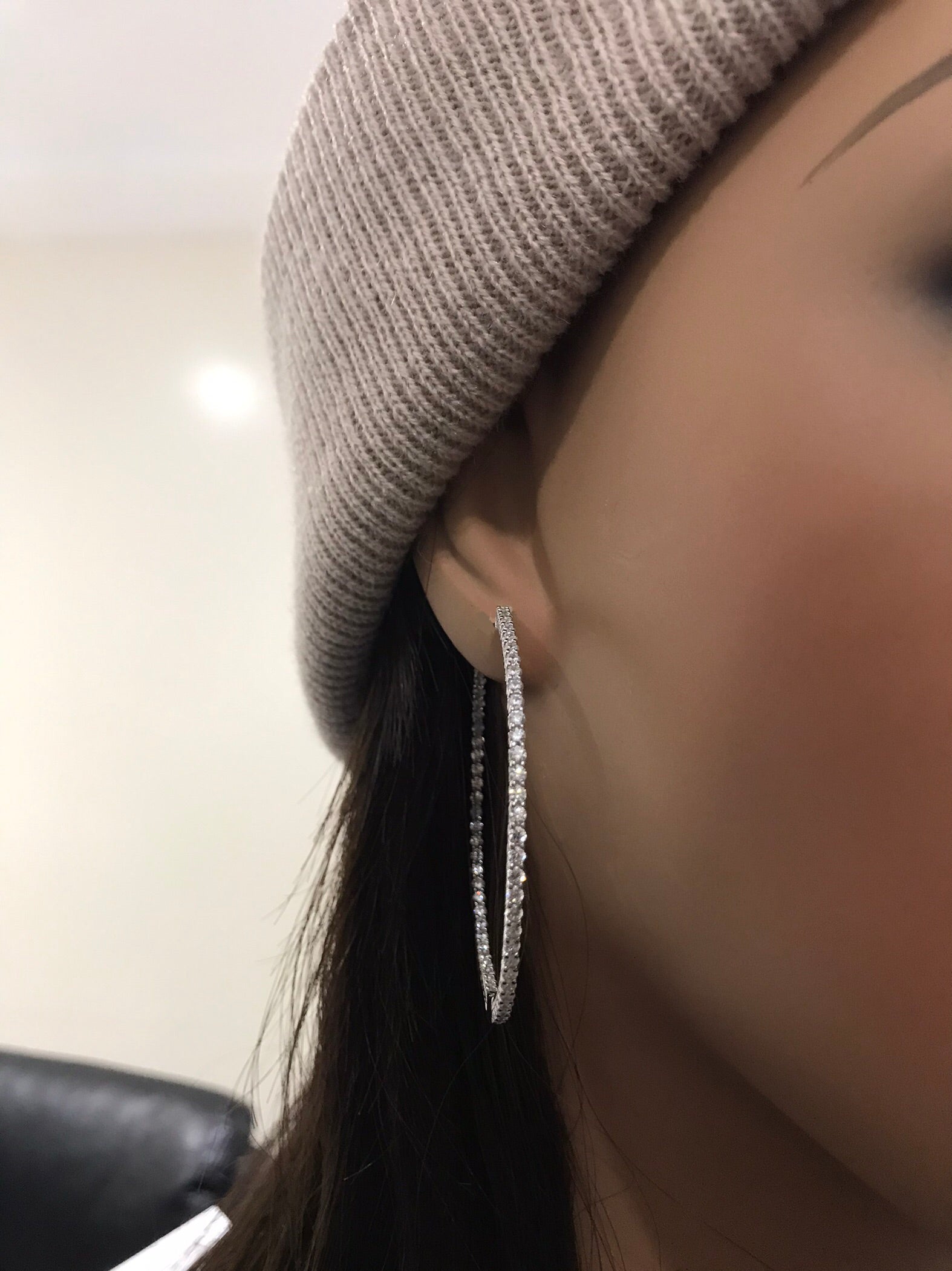Sterling Silver Two Inch Round CZ Hoop Earrings
