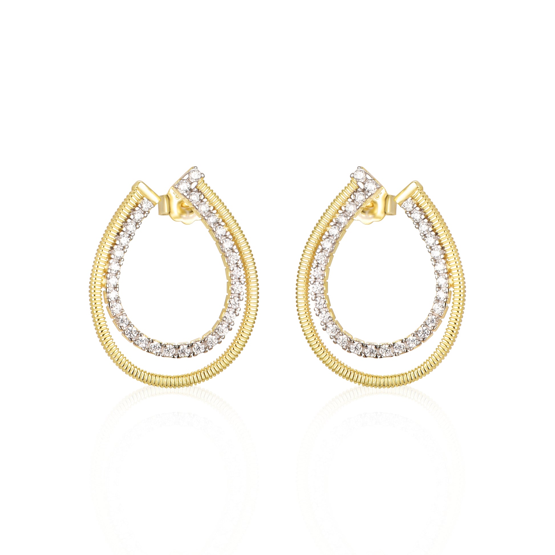 Sterling Silver Two Tone CZ Front Back J Hoop Teardrop Earrings