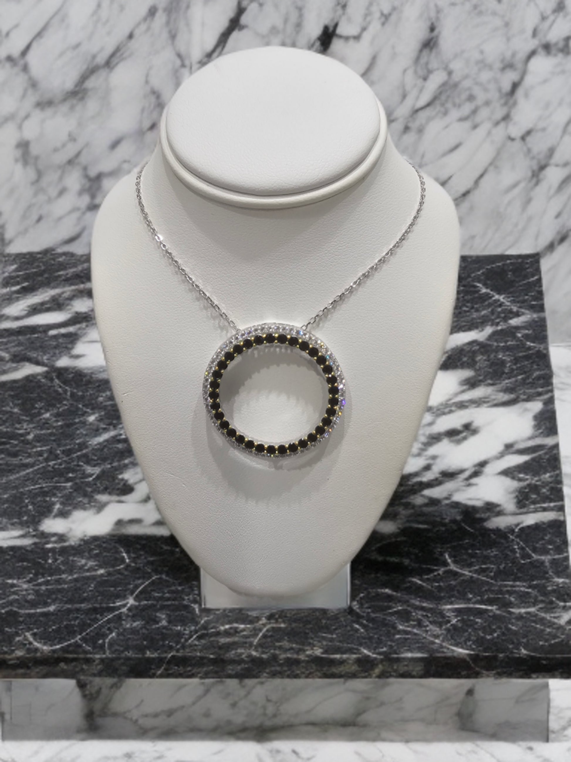 Experience the beauty of our Sterling Silver Circle Pendant, adorned with stunning colored stones, suspended on a sparkling diamond cut chain that measures 14 inches with an additional 3 inch extension. Elevate your style with this exquisite two tone accessory.