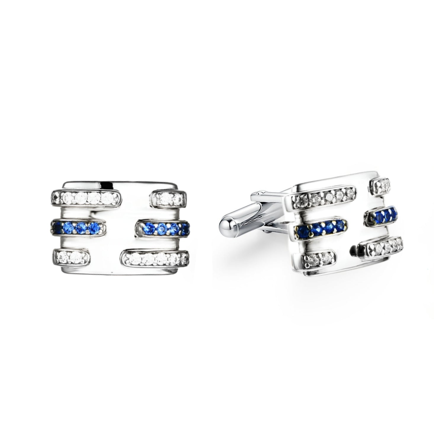 Sterling Silver With Clear and Sapphire CZ Lines Cufflinks