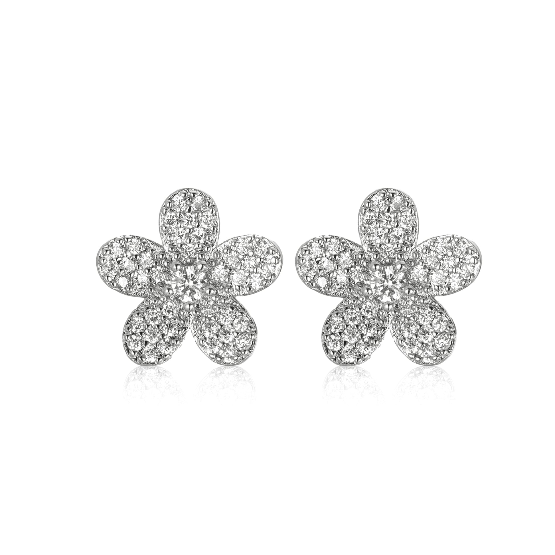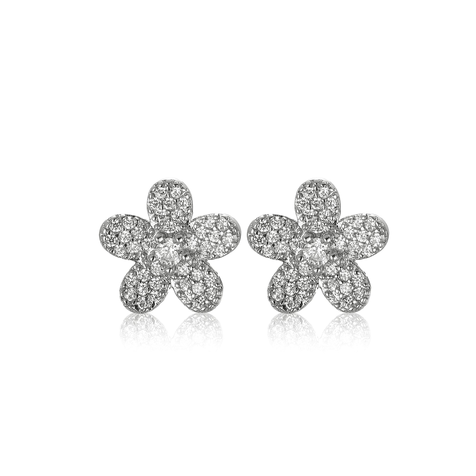 Surgical Steel 5 Petal Micropave Flower Stud Earrings