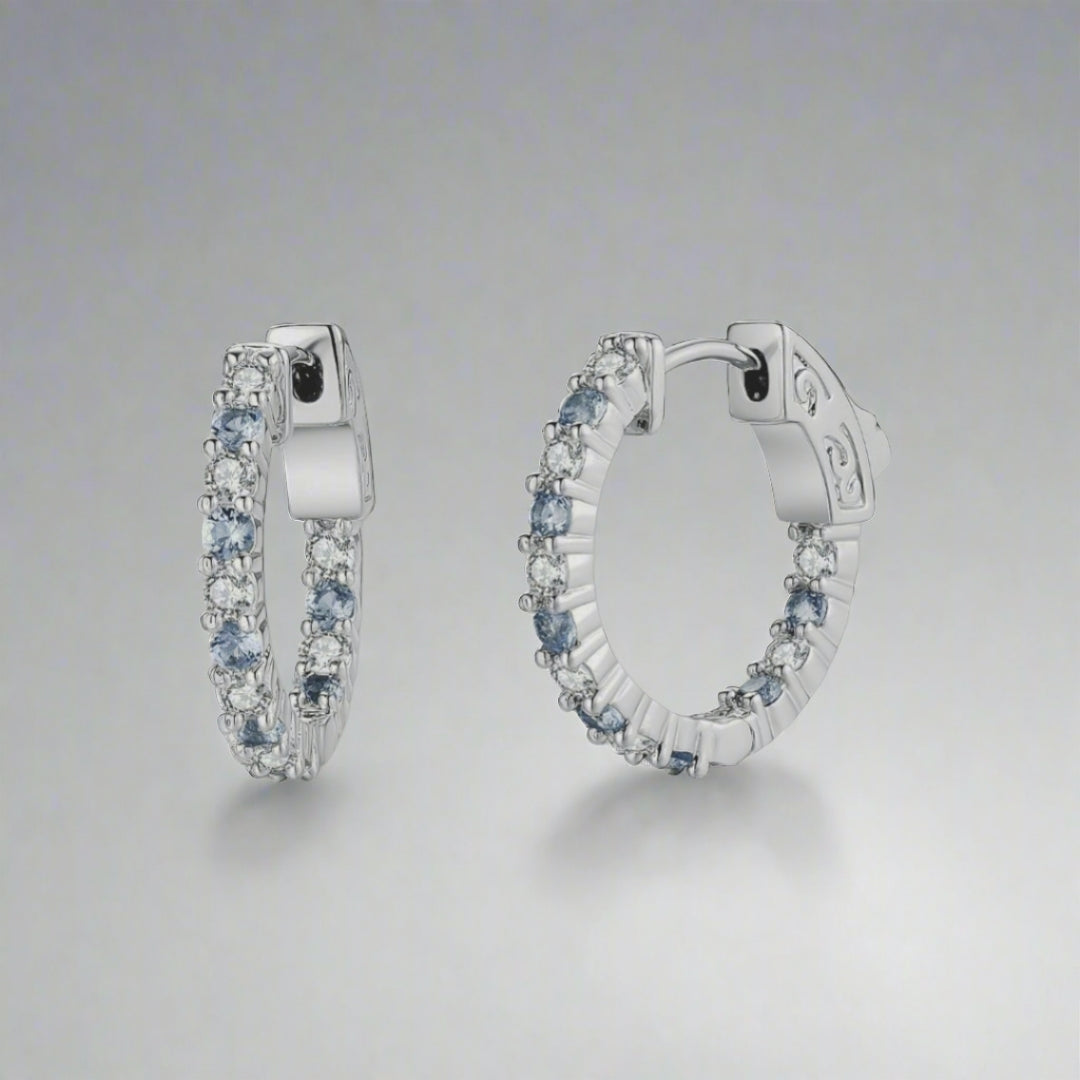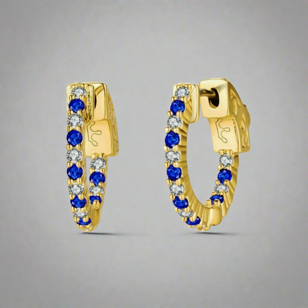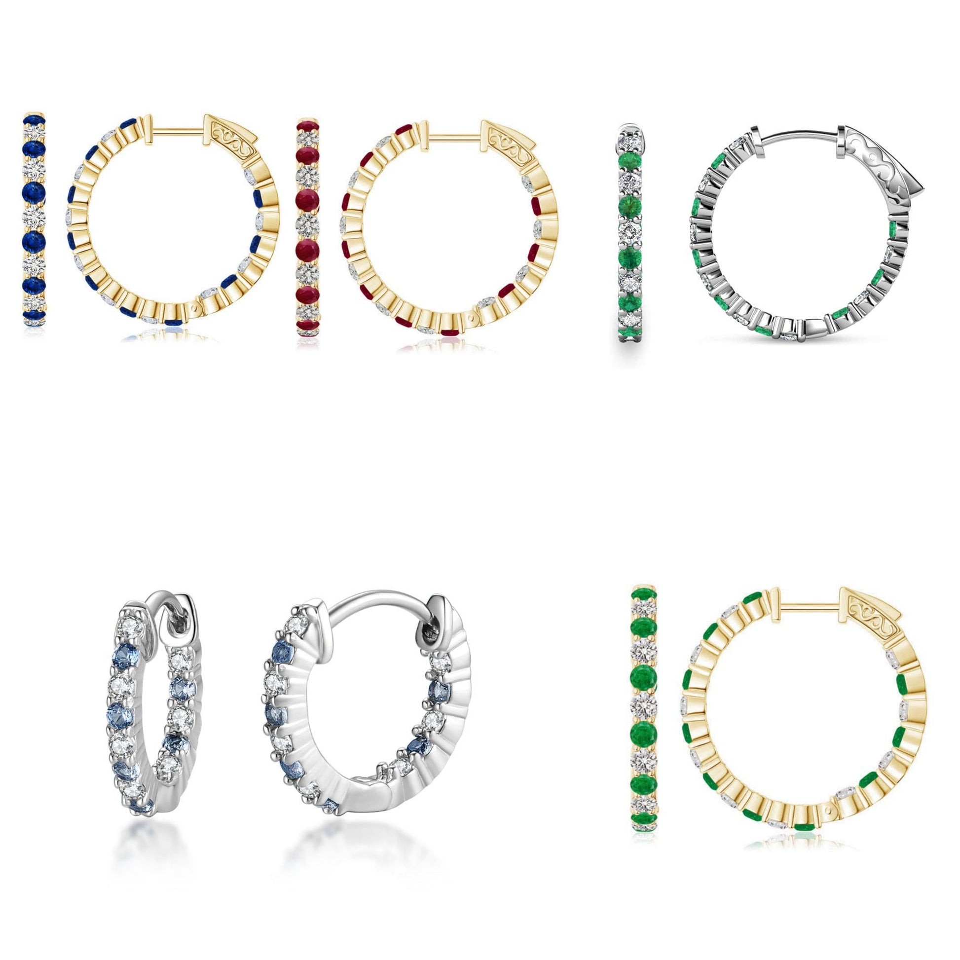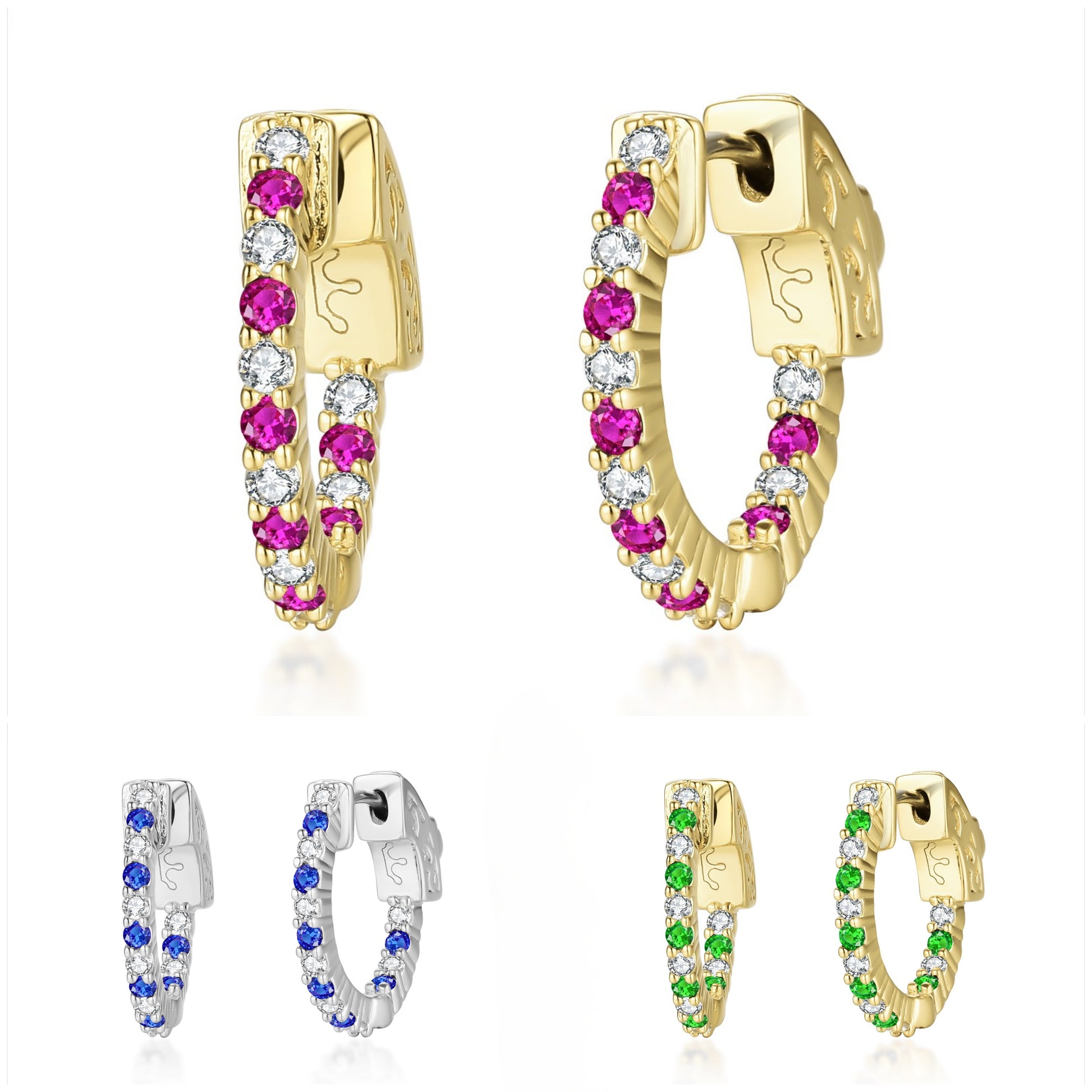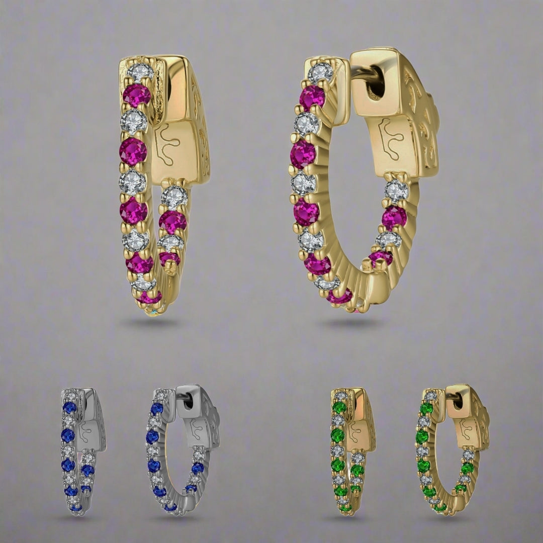 Hypoallergenic Surgical Steel Hoop Earrings with Alternating colored and Clear CZ Stones