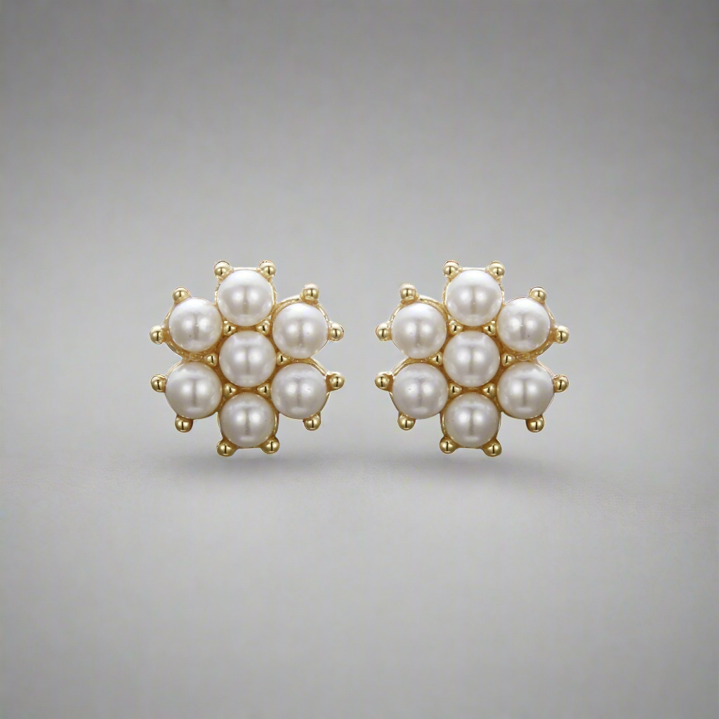 Surgical Steel Gold Plated Pearl Cluster Stud Earring