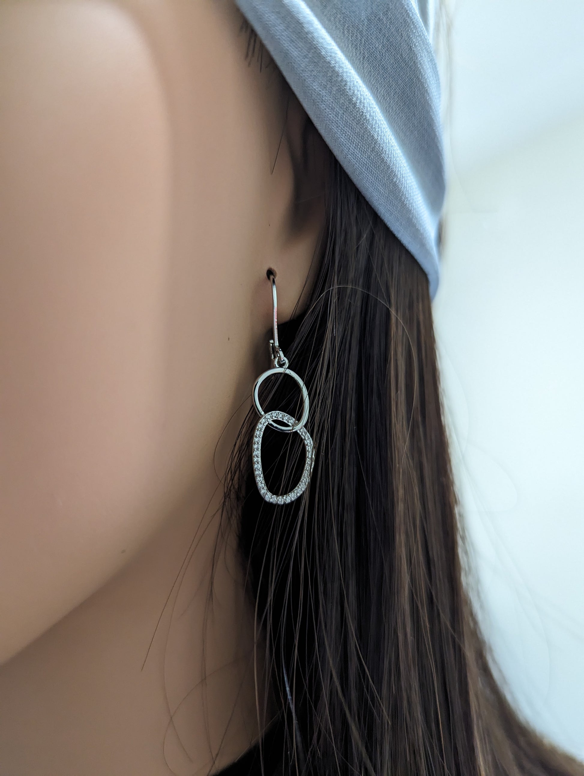 Surgical Steel Half Micropave Double Link Leverback Earrings