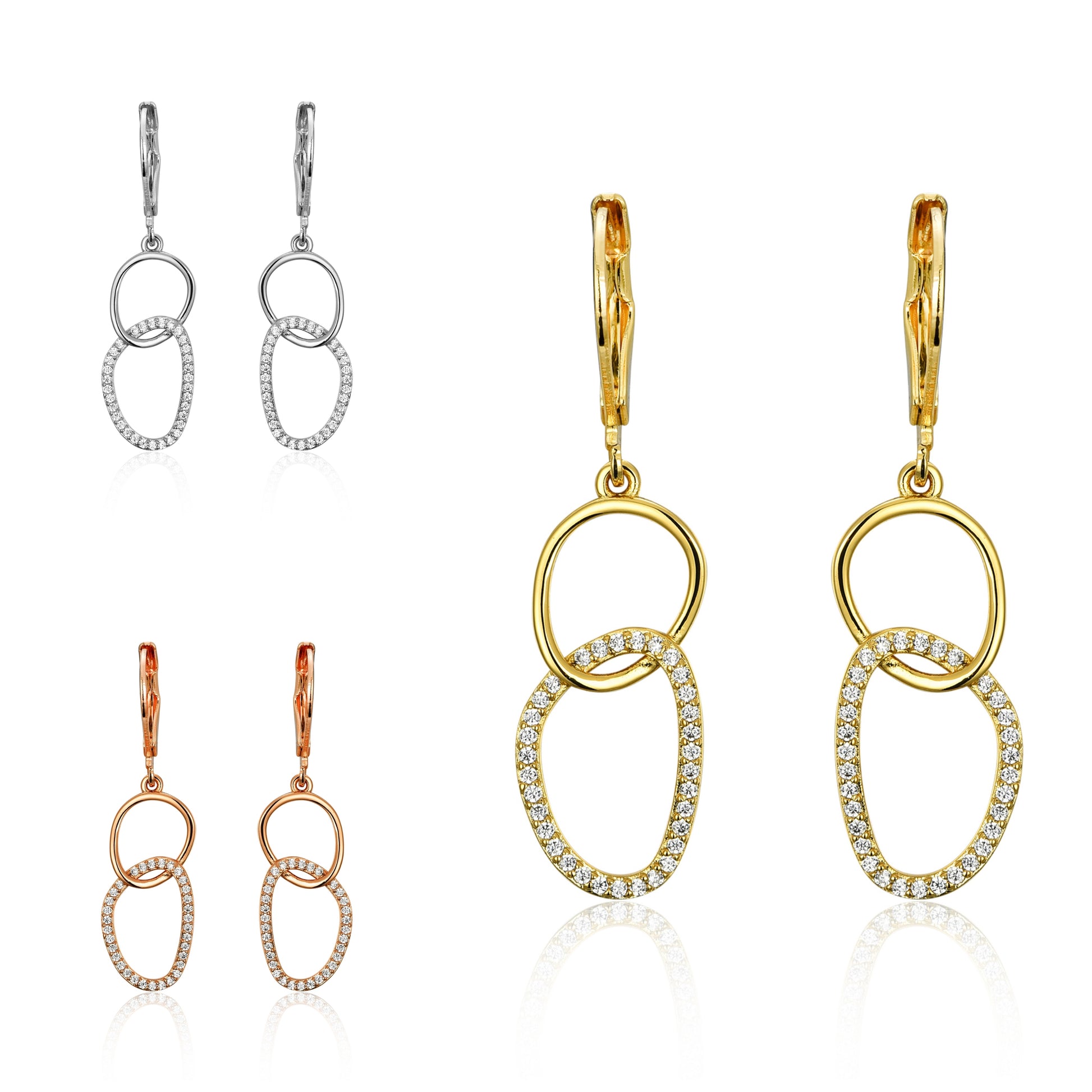These stunning surgical steel earrings feature a double link micropave design, securely fastened with leverback closures.