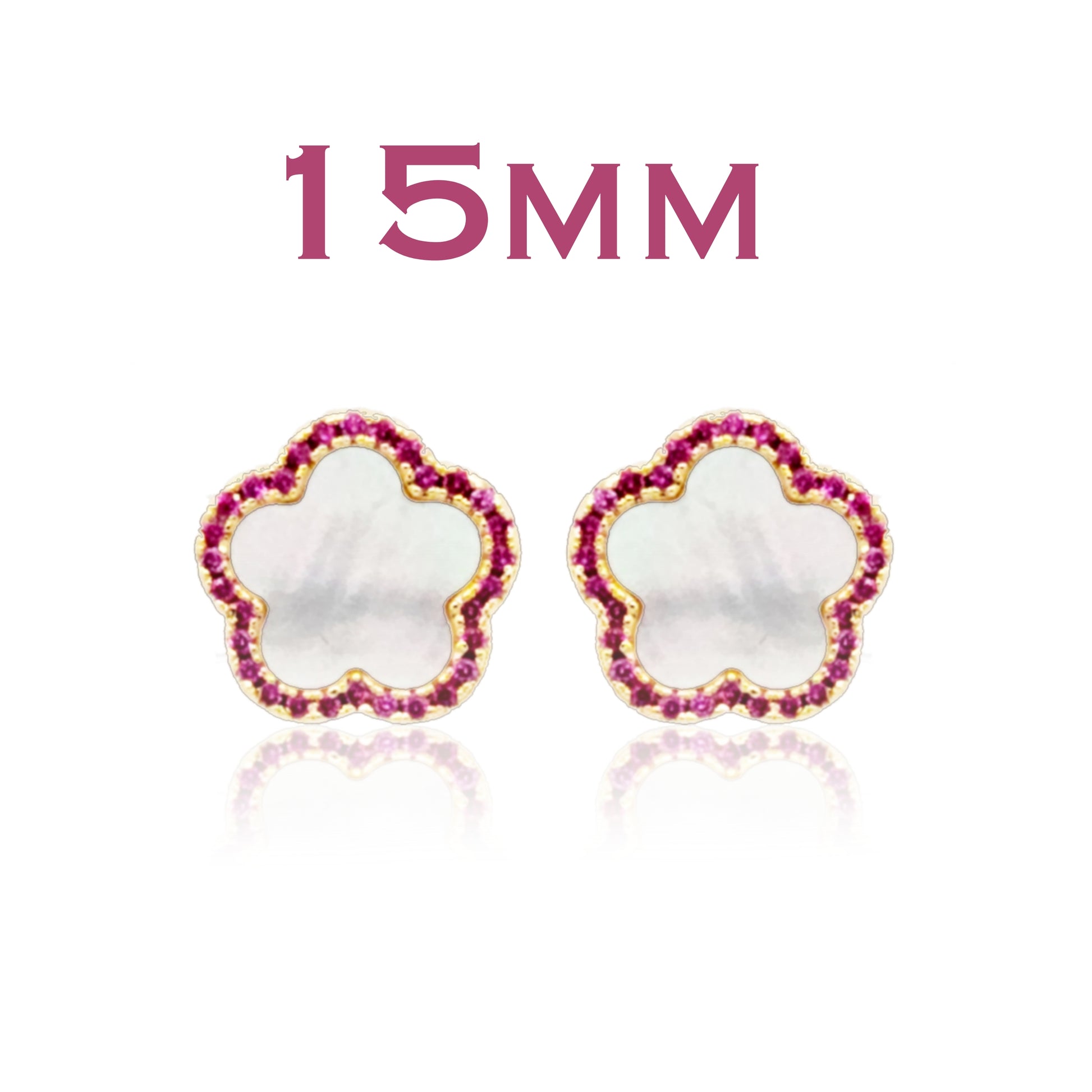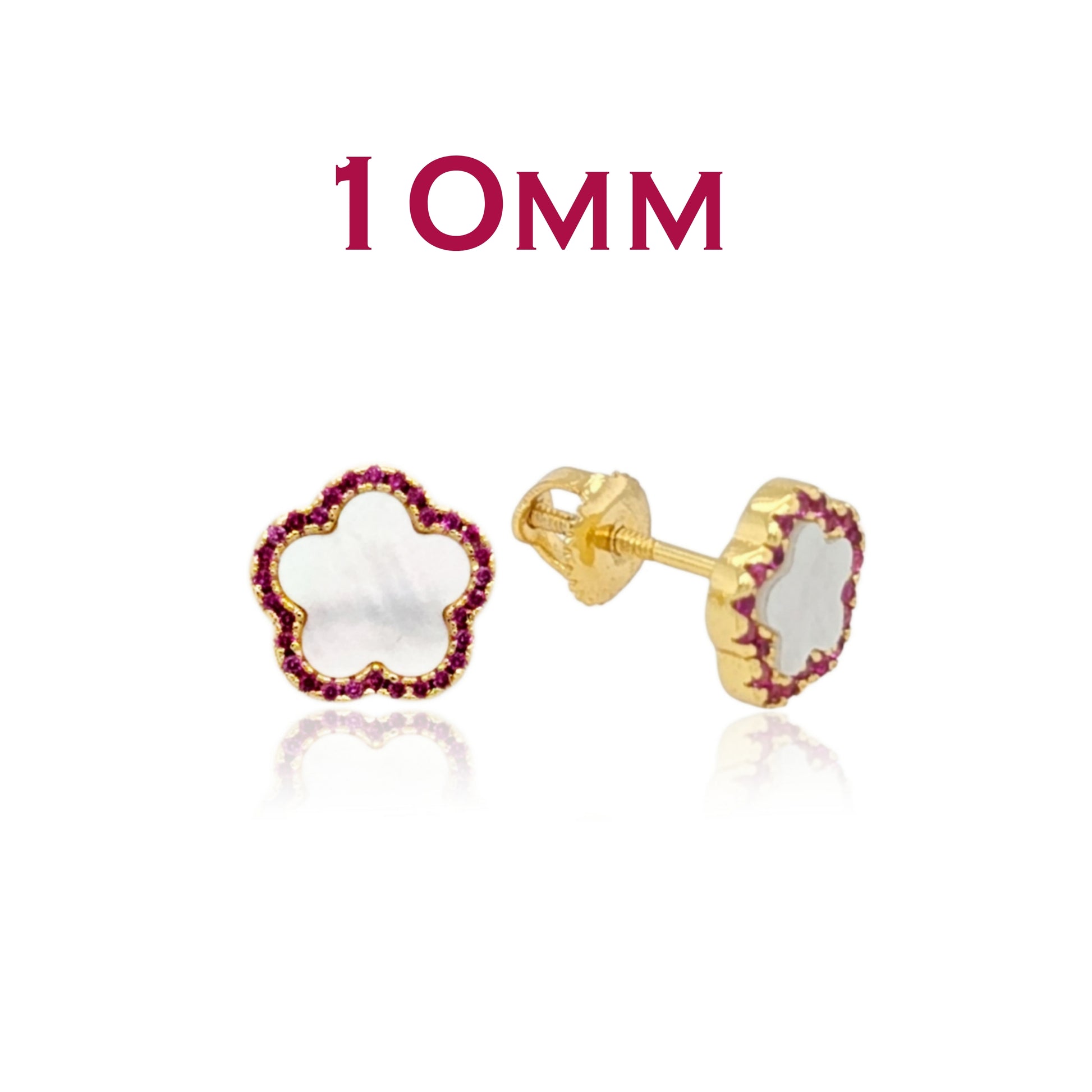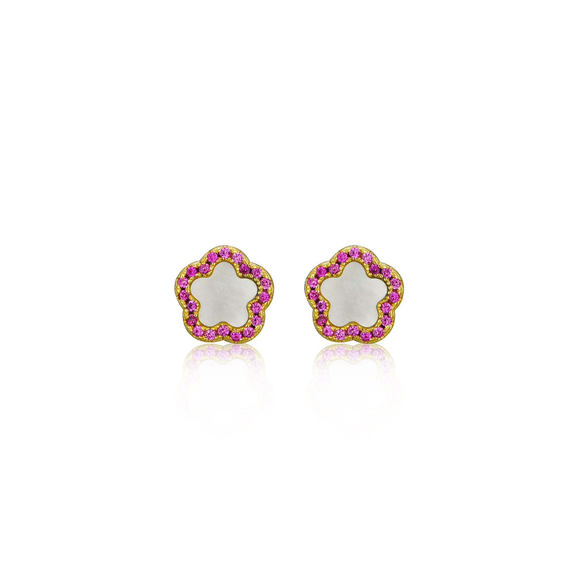 These earrings feature a stunning Mother of Pearl outline flower design, which is adorned with sparkling CZ stones in your choice of fuchsia, blue or clear colors. The combination of the mother of pearl and CZs creates a beautiful contrast, giving these earrings a unique and stylish look that your child will love.