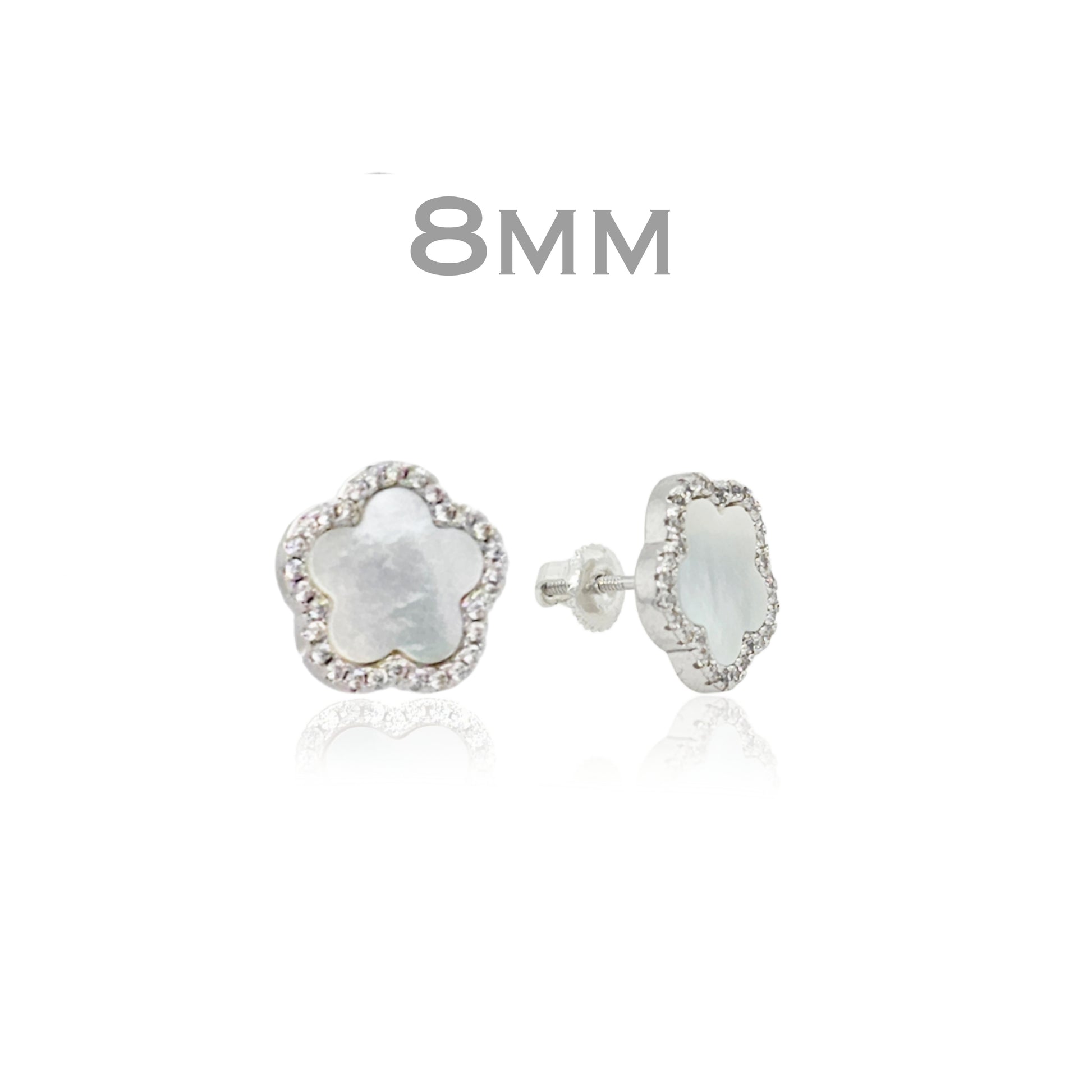 Surgical Steel Mother of Pearl CZ Outline Flower Stud Earring