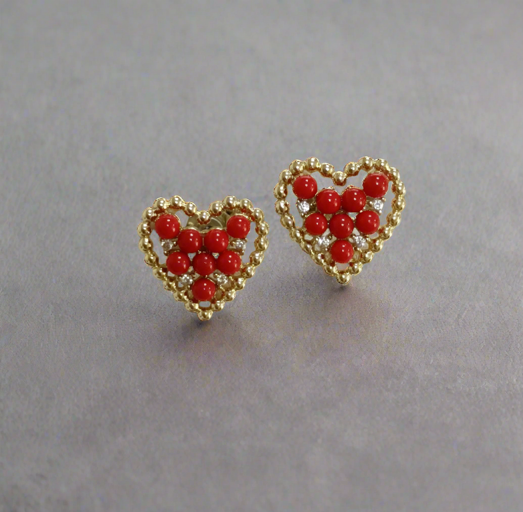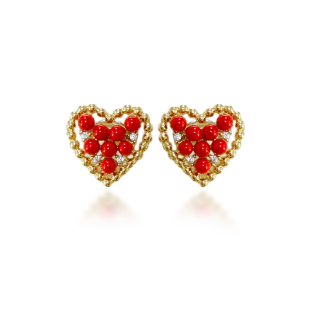 Delight your little one with these 11mm heart-shaped stud earrings, made from durable surgical steel and featuring vibrant red beads for a charming and safe accessory.